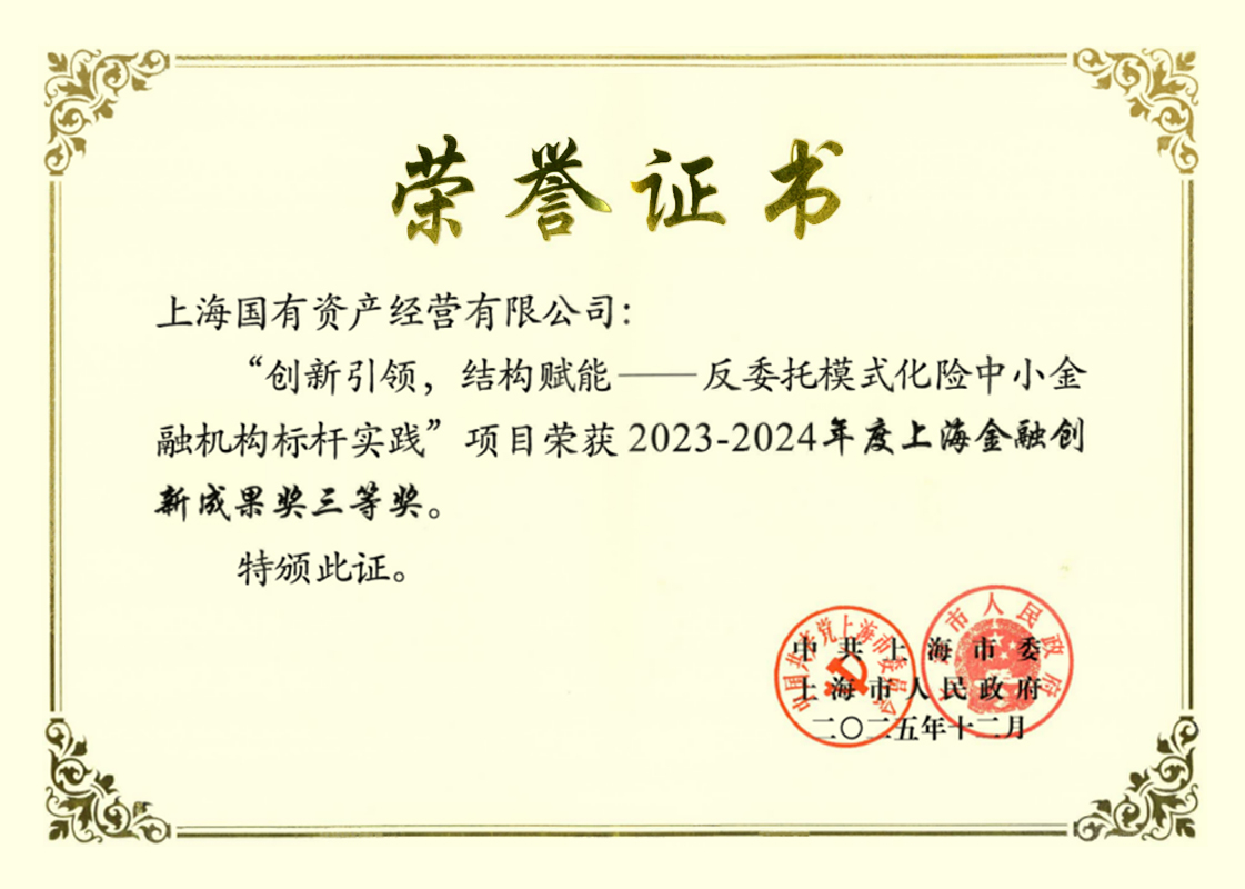 近日,中央广播电视总台“央视财经金融强国——上海金融之夜”在上海临港中心举办,会上颁布了2023-2024年度上海金融创新奖。上海科创基金项目“上海国资体系首支创投类S基金——上海科创基金积极培育资本接力机制,助推上海国际金融中心和科创中心联动”荣获二等奖;国资经营公司项目(现国际AMC公司负责)“创新引领,结构赋能——反委托模式化险中小金融机构标杆实践”荣获三等奖。